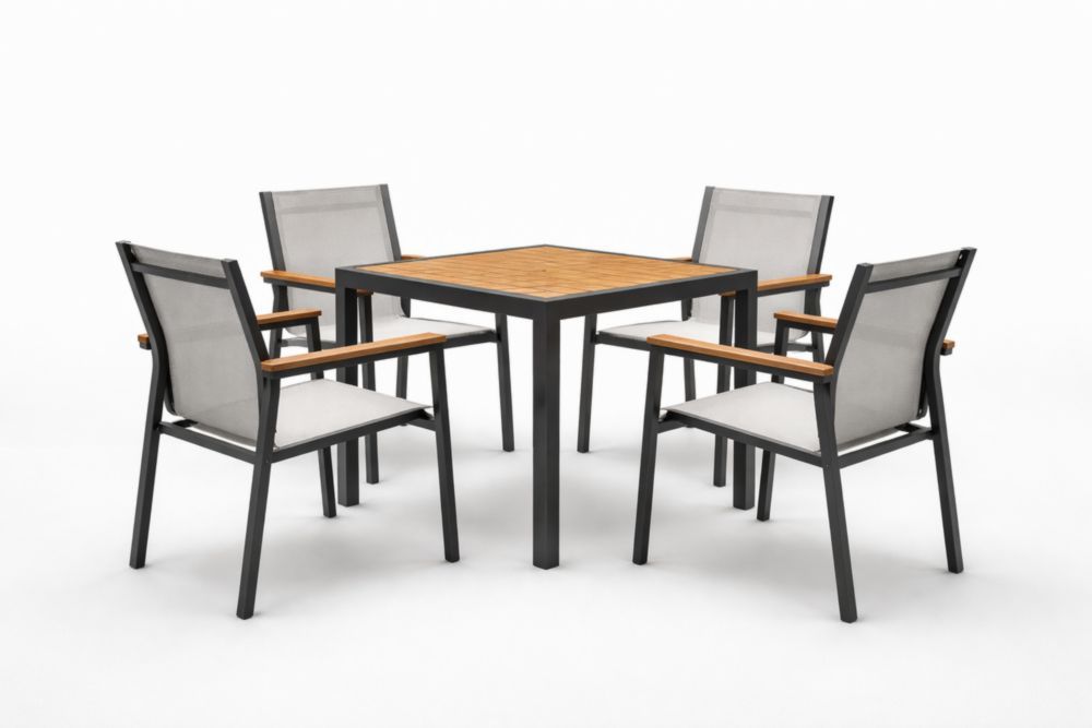 5-Piece Outdoor Dining Set with Metal Frame and Teak Wood Top