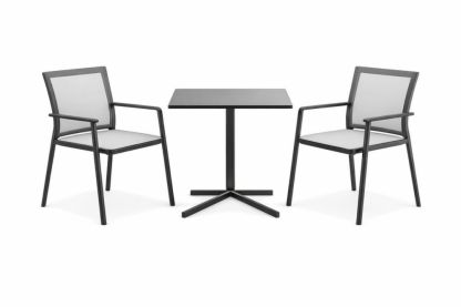 Metal and Textilene Outdoor Bistro Set with Square Table and Armchairs