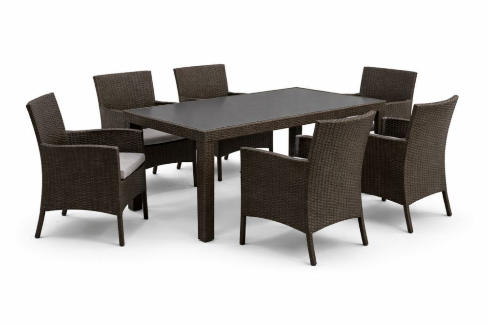 Outdoor Dining Set 7-Piece Wicker with Tempered Glass Table Brown