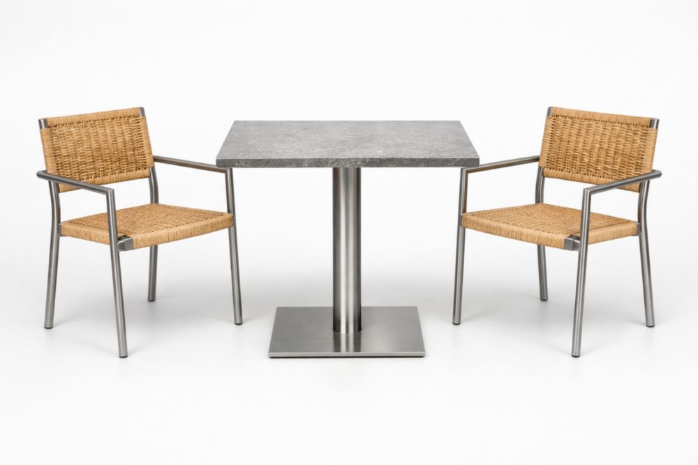 Outdoor Dining Set with Stainless Steel and Woven Chairs