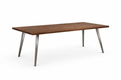Rectangular Walnut Veneer Dining Table with Stainless Steel Legs