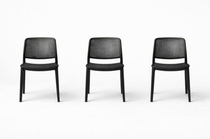 Set of 3 Black Plastic Chairs with Perforated Backrest