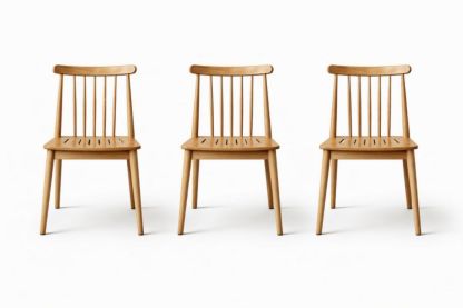 Set of 3 Oak Wood Dining Chairs Natural Finish
