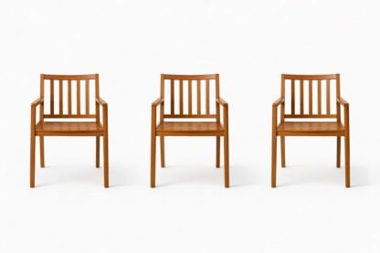 Set of 3 Solid Wood Dining Chairs with Slatted Back Design in Brown